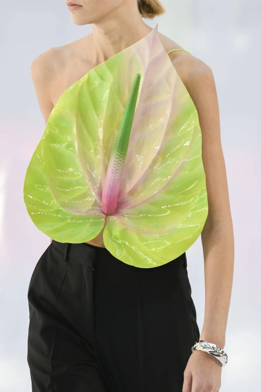 Oda antūrijas zieda skaistumam, protams, ir burtiska - pats tērps ir kļuvis par ziedu. Bet ja daba neiet pie sirds - sveiciens Minecraft un pikseļiem.