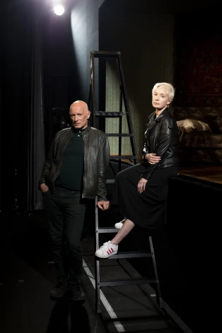 Čulpana Hamatova uz JRT skatuves izrādē "Post Scriptum"