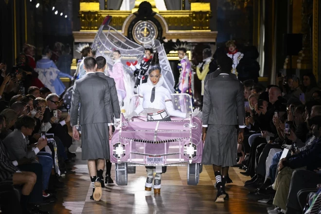 Toma Brauna modes skates vienmēr izceļas ar unikālu koncepciju, sirreālu vidi un emocionālu pacēlumu. Šogad Thom Browne skate bija kā pasaka ar laimīgām beigām, piedaloties aktrisēm Gvendolīnai Kristijai un Emdžejai Rodrigesai, kas bija tērpta “rozā kadiljakā”.