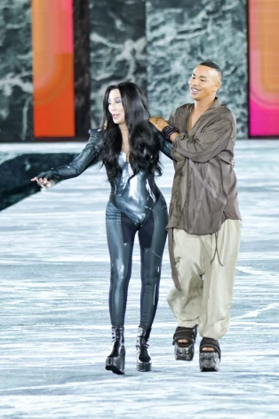 Zīmola Balmain radošajam direktoram Olivjē Rustenam par šova noslēdzošo modeli bija izdevies noalgot popmūzikas leģendu Šēru. Tērpusies spandeksa tipa metāliskā kombinezonā ar efektīgiem plecu polsteriem gluži kā no pašas videoklipiem, 76 gadus vecā zvaigzne viesus iepriecināja ar savu 1998. gada hitu Strong Enough.