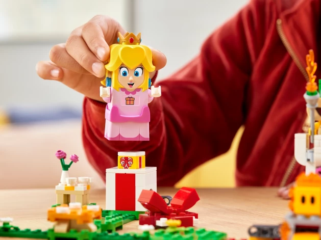 LEGO Super Mario sērijas klucīšu komplekti, kas reizē apvieno digitālo un reālo pasauli, ir lieliski piemēroti rotaļām vienatnē vai sacensībām grupā. Ar Princeses Persikas Piedzīvojumu sākuma komplektu (Adventures with Peach Starter Course 71403) bērni vecumā no 6 gadiem var doties elpu aizraujošos piedzīvojumos ar savu iecienīto videospēles tēlu. Interaktīvā Persika kolekcionē monētas reālās dzīves līmeņos, kas izveidoti ar LEGO klučiem. Tādējādi bērni apgūst mākslu plūstoši pārvietoties no vienas spēles vides uz citu. Turklāt LEGO Persikas figūrai acīs, mutē un vēderā ir integrēti LCD ekrāni, lai parādītu virkni dažādu tūlītēju reakciju uz kustību, krāsu un darbību klučiem. Komplektā ir iekļauts arī skaļrunis, kas atskaņo leģendāro ikonu skaņas un mūziku no videospēļu sērijas.