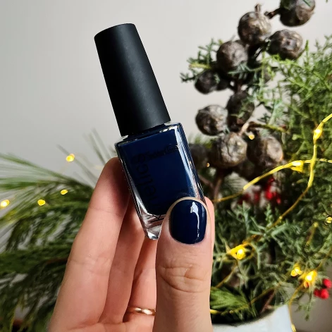 Šo gribētu dēvēt par visas kolekcijas hameleonu -‒ pekēkzila vai zilpelēka ‒ šis krāsas raksturojums katram atšķirsies. Iestrādātie smalkie spīdumiņi to padarīs svinīgāku un cildenāku, taču ne tik krasi, lai toni nevarētu “nesāt” ikdienā. Tieši pretēji ‒ tas brīnišķigi piestāvēs gan pie vienkrāsaina klasiska apģērba, gan arī ierastā džinsa auduma. Ja nagu lakām tiktu veidota kapsulas garderobe (varbūt Tev tāda ir vai esi par tādu domājusi?), tad šis noteikti būtu tonis, kam šajā izmeklētajā kolekcijā būtu jābūt. Nagu laka ir viegli kombinējama ar dažādiem apģērbu komplektiem un piestāvēs nēsāšanai visos gadalaikos.
