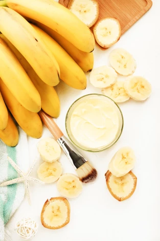 Samīci vienu vidēja izmēra banānu, pievieno 1 tējk. barojoša krēma un 1 tējk. olīveļļas, ½ tējk. citrona sulas un visu samaisi. Klāj uz sejas, pēc 15 minūtēm noskalo.