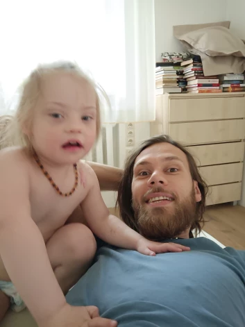 “Izrādījās, ka meitai Dauna sindroma pakāpe nav tik izteikta. Gadās, ka tā ir daudz izteiktāka. Jā, viņai ir ievērojama attīstības atpalicība. Viņa ilgāk nemācēja staigāt, šobrīd mācāmies runāt.