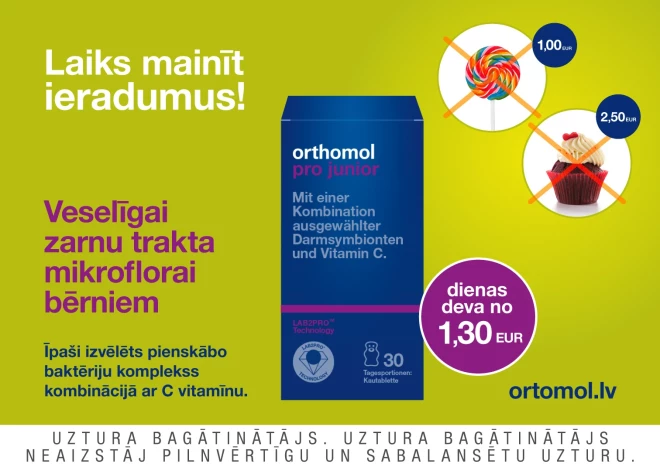 Lielisks papildu atbalsts rūpēs par bērna veselību ir kvalitatīvi uztura bagātinātāji, piemēram, jaunais Orthomol Pro junior. Orthomol Pro junior ir īpaši izvēlēts pienskābo baktēriju komplekss unikālā kombinācijā ar C vitamīnu. Košļājamās tabletes lācīšu formā ar patīkamu zemeņu garšu lieliski piemērotas bērniem no 4 gadu vecuma. Orthomol Pro junior sastāvā esošās labās baktērijas palīdzēs nodrošināt zarnu mikrofloras līdzsvaru, kas nepieciešamas bērna vispārējās veselības uzturēšanā, kā arī pēc infekcijām un antibiotiku lietošanas.
