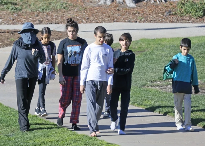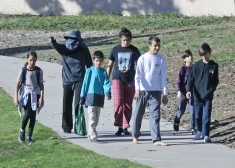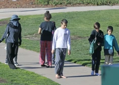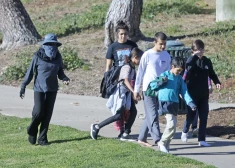 Skandalozā astoņīšu māte Nadja Sulemana pastaigā ar bērniem 2022. gada janvārī