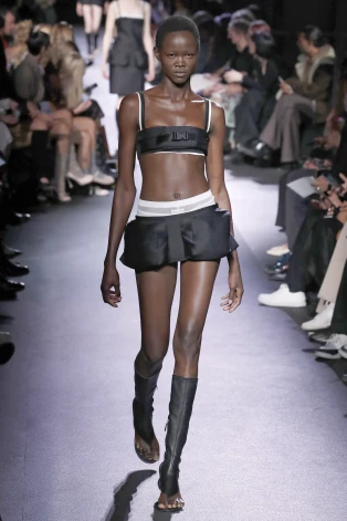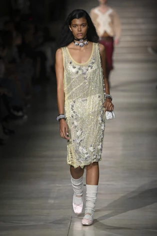 Zīmols Miu Miu jau atkal ir līderis mikro svārkiem, zemajai jostas vietai un baleta čībiņām, pievienojot tādu detaļu kā… apakšveļu. Proti, apakšbiksīšu līnija ir redzama virs svārkiem vai biksēm ar zemu jostas vietu. Tiesa, tām jābūt sportiskām vai meitenīgām – no satīna.