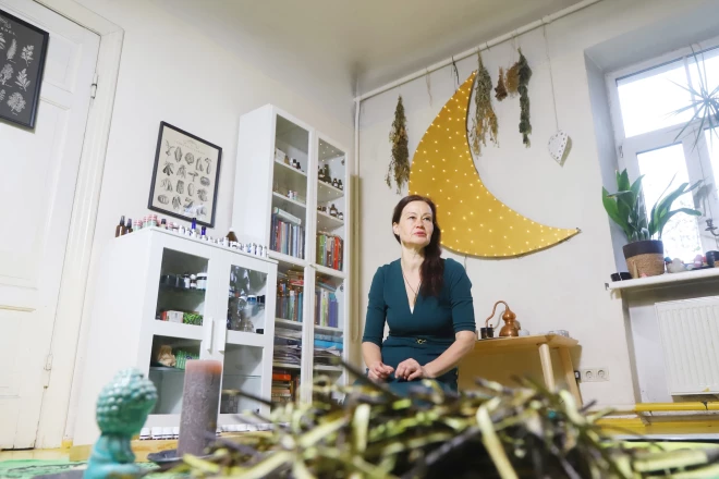 “Burziņš notiek kalna apakšā. Sākot kāpt augšup, ceļā satiec arvien mazāk un mazāk cilvēku, bet tevi tas nesatrauc. Gluži pretēji – tu izbaudi vienatni un jaunos apvāršņus, kas paveras ceļā uz kalna virsotni,” iekārtojoties sēdēšanai uz paklāja, uz kura nolikts trauks ar baltā vītola mizu, krūzes tējai, šķīvis ar cepumiem, kastītes ar augu aromu pudelītēm un pārdomāti izmētāti spilveni, saka Ilze.