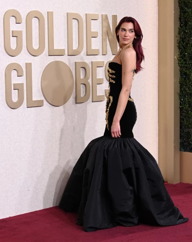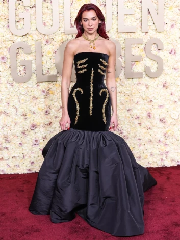 Dua Lipa apmeklē "Zelta globusa 2024" ceremoniju "Schiaparelli" dizainētā kleitā