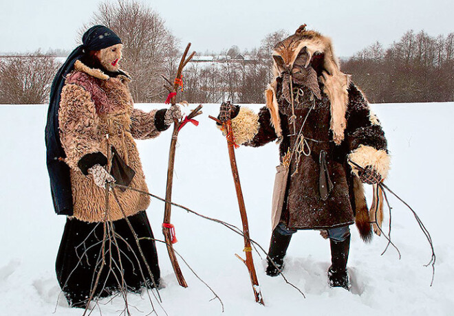 “Par maskām kļuva dzīvnieki, kas mītiskajos priekšstatos spēj pārvarēt robežas starp pasaulēm. Dzērve vasarā ir te, ziemā citur, lācis vasarā staigā pa mežu, bet ziemā aizmieg,” turpina Aīda. “Pavisam savāda maska ir Sietiņš, kas ir maz izpētīts. Pēc skata tas ir maiss ar sietu galvā. Tas iet un kaisa miltus. Sietiņš apvieno divus aspektus – viens ir tas, ka siets saistīts ar Pērkona sievu un meitām, kas sijā lietu. Savukārt lietus tiek tverts kā sperma, kas apaugļo zemi. Otrs – zvaigznājs Sietiņš, ko dēvē arī par Plejādēm, daudzām tautām saistīts ar senču kultu. Baltkrievu tautas priekšstatos cilvēka dvēsele pēc nāves vispirms dodas uz Sietiņu un tikai pēc laika nonāk pie Dieva. Sietiņš ir starptelpa. Iespējams, ka te saplūst senču un auglības kulti.”