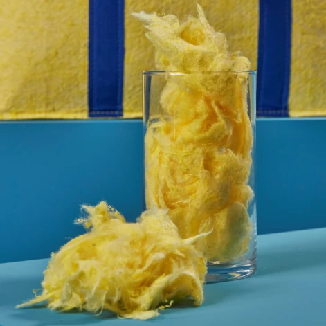 šķiedras tika jauktas ar citiem materiāliem, piemēram, pārstrādātu poliesteri no lietotām PET pudelēm vai pirmspatēriņa tekstilatkritumiem.