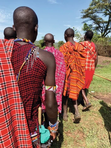 Maasai Mara parka apciemošanu par papildu 20 ASV dolāriem apvienojam ar masaju cilts ciemata apmeklēšanu. Jau pirms brauciena internetā manīju dažādas atsauksmes, ka šie tūristiem paredzētie ciemati ir nedaudz mākslīgi izskaistināti (lasi – pasliktināti, lai iežēlinātu tūristus) un īstie masaju pārstāvji ir manāmi ceļmalās. Pa ceļam uz ciematu redzam dažādus tradicionālajos tērpos ģērbtus cilvēkus, kuri gana govis, kazas un aitas, ravē piemājas dobīti un dzīvo puslīdz civilizētā mājā, ko varētu sastapt arī Latvijas lauku vidienē.