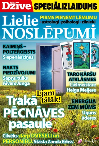 Vairāk par neredzamās pasaules procesiem, sapņu tulkošanu, smalkām enerģijām, sevis harmonizēšanu un dvēseles dziedināšanu lasi žurnāla Patiesā Dzīve speciālizlaidumā Lielie Noslēpumi! Viss par to, kas mēs patiesībā esam un kas mūs sagaida galapunktā.