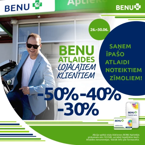 Ieskatieties plašajā ķermeņa kopšanas līdzekļu klāstā BENU e-Aptiekā, vai dodieties uz BENU Aptiekām klātienē, kur vēl līdz 30. jūnijam atradīsiet lieliskus piedāvājums gan kosmētikai, gan uztura bagātinātājiem līdz pat 50 %, uzrādot BENU karti!