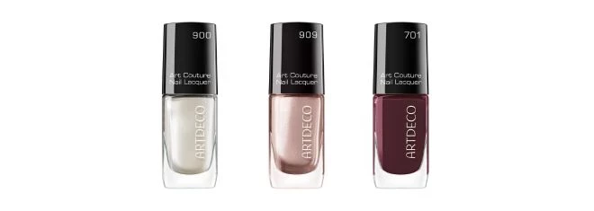 Vegāniskā nagu laka Art Couture ir augsto tehnoloģiju produkts, kas nodrošina noturīgu, izcilu spīdumu, pateicoties patentētajām sastāvdaļām. Augsts pigmenta saturs garantē intensīvas krāsas un lielisku pārklājumu. Nagu laka ir ātri žūstoša. No augstas kvalitātes Tynex šķiedrām izgatavotās otas garums, platums un noapaļojums garantē augstu precizitāti un nevainojami nolakotus nagus. Barojošās aktīvās sastāvdaļas, piemēram, aminopeptīds, pantenols, A, C un E vitamīni, uzlabo nagu struktūru. Tonis Nr. 701 piešķir nagiem elegantu ogu toni, savukārt Nr. 900 – mirdzošu baltu nokrāsu, bet Nr. 909 pārklāj nagus zaigojošā sārtā krāsā. Art Couture nagu laka ir piemērota jutīgai ādai. Saderība ar ādu ir dermatoloģiski apstiprināta. Cena:8,95 EUR