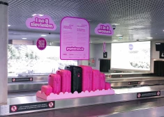 Pie Ielidošanas, bagāžas saņemšanas zonā, uzmanību piesaista vēl viena instalācija: 7 spilgti rozā čemodāni kopā ar 1 melnu čemodānu, kas parāda satraucošo statistiku – katra astotā sieviete Latvijā savas dzīves laikā saslims ar krūts vēzi. Šī kontrastējošā vizuālā prezentācija kalpo kā aicinājums uz agrīnu diagnostiku un regulārām veselības pārbaudēm.