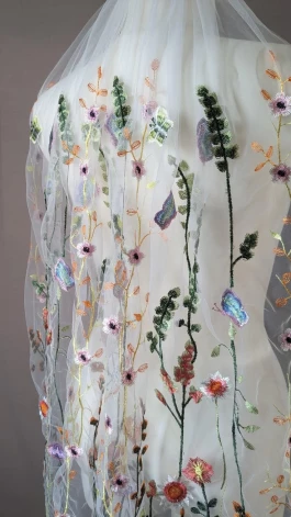 Pieminot dabas motīvus, florālie/puķu izšuvumi un aplikācijas ir aktuāli ne tikai kleitās, bet arī aksesuāros – tie piešķir dabisku, romantisku pieskārienu plīvuriem, matu rotām un pat cimdiem. Šādi izšuvumi var būt mazi un delikāti, radot maģisku izskatu.