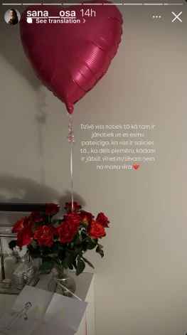 Influencere publiskojusi arī foto, pēc kura noprotams - atgriežoties mājās no klīnikas, viņu sagaidījuši dēla zīmējumi un vīra sarūpēti svaigi ziedi. "Dzīvē viss notiek tā, kā tam ir jānotiek, un es esmu pateicīga, ka viss ir salicies tā... Ka dēls piemēru, kādam jābūt vīrietim/tēvam, ņem no mana vīra," raksta Sana, pievienojot savam komentāram sirsniņas emocijzīmi.