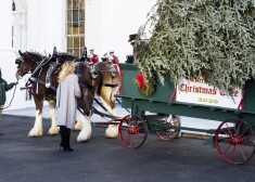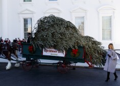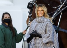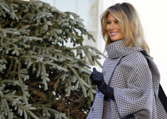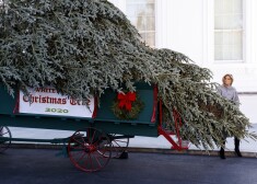 Melānija Trampa sagaida lielās Ziemassvētku egles atvešanu Baltajā namā 2020. gadā