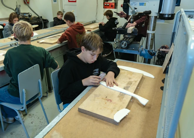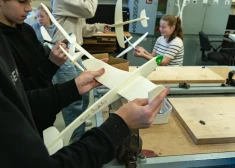 FOTO: dronu konstruēšana un vides elementu modelēšana: kā Rīgas skolēni apgūst STEAM jomas priekšmetus