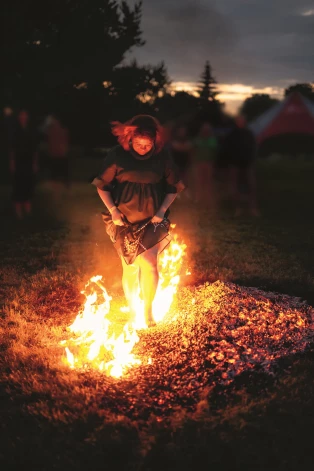 Ugunsstaigāšanas meistars Mārtiņš Vecvanags var sakurt ugunsceļu Sahāras tuksnesī vai Latvijas pļavā, doties pa to pats un vest šajā maģiskajā ceļojumā citus. Basas kājas uz kvēlojošām oglēm… Te katrs var pārbaudīt savu spēju robežas un novilkt jaunas. Apzinoties – jā, es to varu, un, ja varu šo, tad varu vēl vairāk!