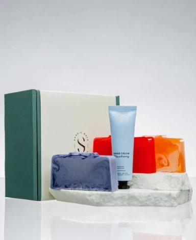 Šis dāvanu komplekts piedāvā ogu un augļu iedvesmotu roku kopšanas rituālu, kas apvieno estētiku un ikdienas rūpes par ādu. Komplektā iekļautas trīs ar rokām radītas ziepes – “Mellene”, “Karaliskā dzērvene” un krēma ziepes “Greipfrūts un cidonija” –, katra kā neliels krāsu un aromātu mākslas darbs, kā arī 25 ml roku krēms “Mellene”. Roku krēms ātri iesūcas ādā, satur 95% dabiskas izcelsmes sastāvdaļu, stiprina ādas dabīgo hidrolipīdu barjeru un palīdz saglabāt optimālu mitruma līmeni. Eleganti iesaiņots un gatavs dāvināšanai, šis komplekts ir pārdomāta dāvana skaistam un koptam ikdienas rituālam.