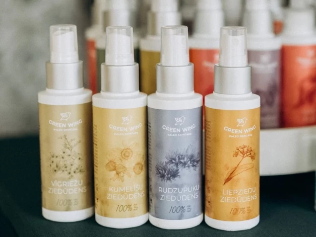 Industriāli ziedūdeņus iegūst kā ēterisko eļļu destilācijas blakusproduktus, tāpēc tirgū dominē eksotiskie rožu vai lavandas ūdeņi. Tomēr pašmāju zīmols Green Wing pierāda, ka Latvijas daba ir neizsmeļama: šeit top vīgriežu, rudzupuķu, cidoniju, liepu, ābeļziedu un pat smiltsērkšķu ogu destilāti. “Mana aizraušanās ar ziedūdeņiem sākās, meklējot veidu, kā apvienot zināšanas ķīmijā ar mīlestību pret Latvijas dabu. Industrijā redzētie sintētiskie sastāvi mudināja radīt ko patiesu – Green Wing ziedūdeņi nav fabrikas produkts, tie top ar cieņu pret katru augu, ko esam rūpīgi atlasījuši tepat mūsu reģionā,” stāsta Ance.