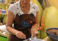 Vakar savu sniegumu demonstrēja delikatešu veikala Gastronome šefkonditors Jānis Večens, kurš gatavoja trīs saldos ēdienus – Macaroons cepumus, vēja kūkas un apelsīnu siera kūku.