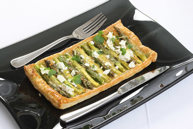 Sparģeļu pīrāgs ar kazas piena sieru