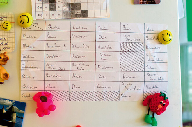 Sadzīve katrā mājā tiek rūpīgi organizēta, un tā nav ciemata vadības kaprīze. Elementārās iemaņas bērniem lieti noderēs turpmākajā dzīvē. “Vai maniem bērniem bija strikti noteikti pienākumi un dežūras? Laikam jau ne, bet šie bērni jāgatavo patstāvīgai dzīvei, kurā pašiem vien būs jāķepurojas. Ja kāds nav izdarījis to vai šo, televizoru vakarā neskatīsies. Man sākumā bija grūti to pieņemt.”