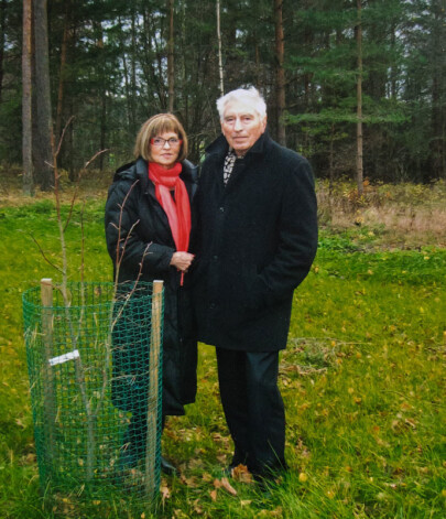 – Lēmums nobrieda pamazām. Visus šos gadus Velga regulāri apmeklēja Omulību klubiņu, kur mēs visi jūtamies kā liela ģimene. Tā mēs pamazām sākām iet kopā uz teātra izrādēm un apmeklēt izstādes. Pēc kāda laika es uzdrošinājos bildināt un saņēmu piekrišanu. Tobrīd mēs vairījāmies no publiskuma, arī dzimtsarakstu nodaļa bija pretimnākoša un pieņēma mūs tajā dienā, kad nevienu citu pāri nereģistrēja. Vedēji bija mani seni ģimenes draugi – Ilona un Aivars Sniedzes. Viņi bija pārsteigti, ka saderināšanas ceremonijā mums nebija gredzenu. Es teicu, ka būs vēl viena ceremonija. Pasūtītos sudraba gredzenus mēs uzvilkām viens otram pirkstā Tērvetes dabas parka tornī, kas ir 36 metrus augsts. Pērn Tērvetes dabas parkā notika manas grāmatas Mūsu mazais pārgājiens atvēršana, un man bija gods pie jaunā torņa iestādīt pirmo liepiņu. Toreiz runasvīri smejot teica – mēs dāvinām Hānbergam dzimšanas dienā šo Tērvetes torni. Un es nolēmu, ka tieši tur notiks apmainīšanās ar gredzeniem.