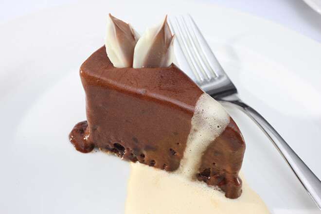 Šokolādes torte ar ingveru un ananasu sabajona mērci