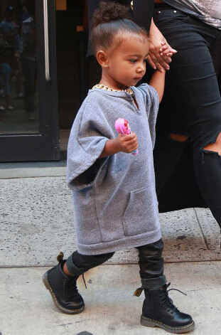 Visnepārspējamākā jaunā modes ikona ir realitātes šovu zvaigznes Kimas Kardašjanas un hiphopa mūziķa Kanje Vesta trīs gadus vecā mazulīte Norta, kurai bez lieliskās, dārgās garderobes ir pat draugi augstākajās modes aprindās. Tiem viņa var pateikties par modīgajām dāvanām (vēl pirms piedzimšanas). Piemēram, speciāli viņai radīta ādas kleita no Alexander Wang, džemperi un sporta apavi no Celine u. c. Un tas viss tiek vilkts kā pieaugušajam, neiztiekot bez baikeru stila ādas jakām, kažokādām, Chanel rokassomām, tētuka Yeezy botām, čokera kaklarotām, lencīšu kleitām virs T krekliem.