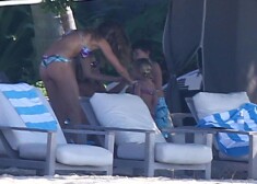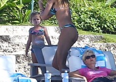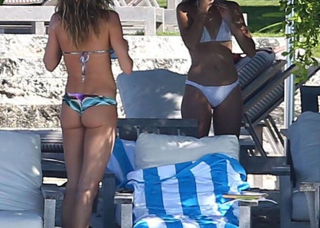 Žizele Bundhena pirmoreiz pludmalē pēc krūšu palielināšanas operācijas