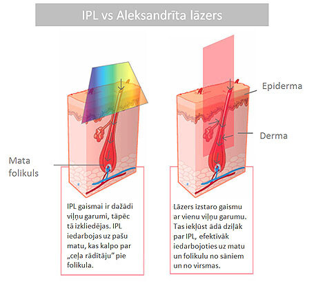 Neņemot vērā, ka lāzerepilācija un fotoepilācija ir gaismas iedarbības rezultāts uz matu folikuliem, šīs procedūras būtiski atšķiras un tas ietekmē gan procedūras veikšanas efektivitāti, gan komfortu.