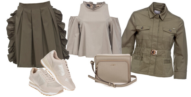 Militārais stils radīs spēcīgas un uzņēmīgas sievietes tēlu. Jaku un svārkus var kombinēt ar brīvā laika apaviem, sniedzot papildus komfortu ātrajā ikdienas ritmā. Somiņa, kā viens no svarīgākajiem aksesuāriem, tāpat kā iepriekšējā rudens/ziemas sezonā ir kantaina. Nelielais izmērs ļauj līdzi ņemt tikai nepieciešamāko.