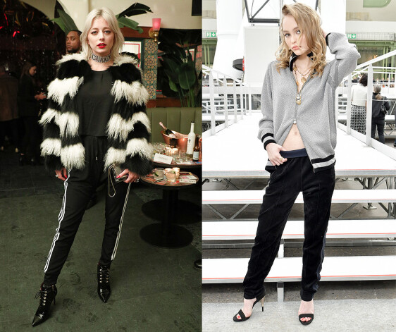 Drosmīgākā tendence: tērpa sportiskā rakstura mazināšanai un sievišķīga seksapīla demonstrēšanai treniņtērpi ir valkājami ar izteiksmīgiem, ķermeņa proporcijas pagarinošiem augstpapēžu apaviem.