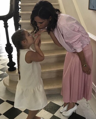 Bekhemu ģimenes luteklīte, vienīgā meita Hārpere ar savu Burberry trenču, Chloe kleitiņu, Stella McCartney svārciņu, Gucci jaciņu kolekciju ir mammas – perfekcionistes – spogulis.