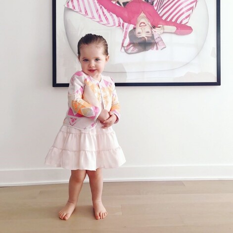 Viņa priecē ar savu meitenīgo, apzinīgā mazulīša garderobi – meitenīgām kleitiņām, krāsainām somiņām, zeķbiksēm un – neiztrūkstoši – matu lenti. “Uzskatu, ka viņai ir jāvalkā tas, ko pati vēlas. Bērnam ir svarīga sava identitāte un tāpēc vēlos iedrošināt viņas radošo pašizpausmi.