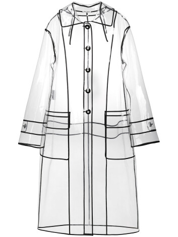 Caurspīdīgs lietusmētelis ne tikai pasargās no nelabvēlīgiem laikapstākļiem, bet arī ļaus atklāt izvēlēto dienas tērpu.