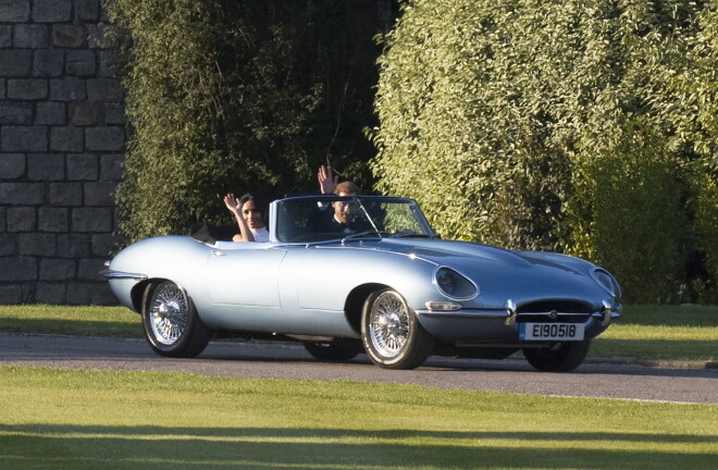 Pāris no Vindzoras pils uz Frogmoras namu, kur notika svinību turpinājums, devās Jaguar E-Type Concept Zero elektromobilī.