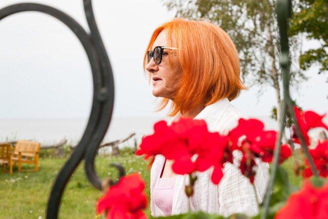 Laikam tā ir, es nezinu. Man ar sevi ir tik labi. Es staigāju pa dārzu un runāju ar puķēm. Stādu un saku: „Tev te ir jāaug, un tu nekaprizējies, te ir laba zeme. Iepriekšējā dārzā bija slikta zeme.” Un man patiešām viss aug. Es bieži pat nezinu, kā to puķi sauc, ko stādu, nezinu, kāda zeme katrai ir vajadzīga – skāba vai neskāba –, bet man viss aug.