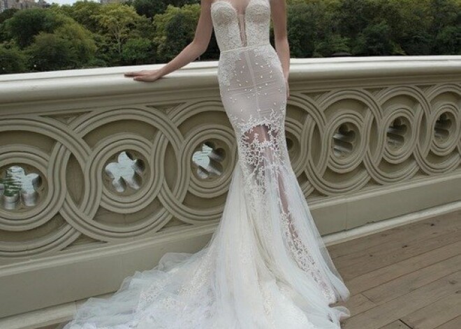 Latviešu modele Karlīna Caune demonstrē pasakaini skaistus kāzu tērpus. FOTO