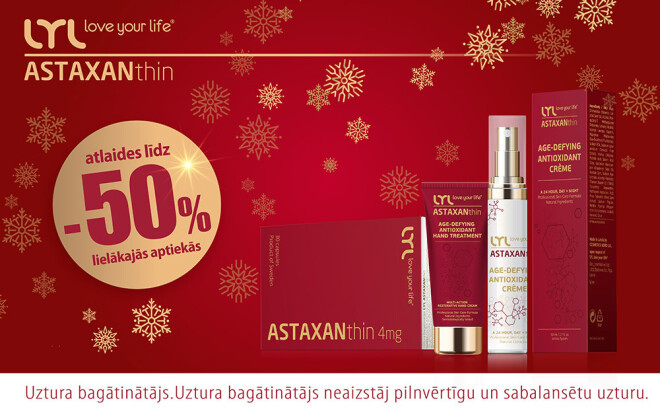Lai šajos skaistajos svētkos dotu iespēju Tev iepriecināt ne tikai mammu, māsu, māsīcu, bet arī pašai sevi pašu - ASTAXANthin Age-Defying Antioxidant Crème dermokrēmu sejas ādai decembrī var iegādāties ar vienreizēju atlaidi – 50% lielākajās aptiekās Latvijā un www.well24.eu.