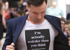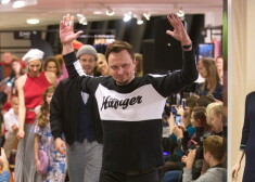 FOTO: Andris Bulis, Lelde Ceriņa un DJ Rudd defilē uz mēles modes skatē