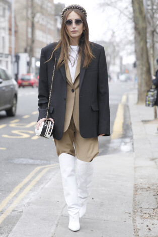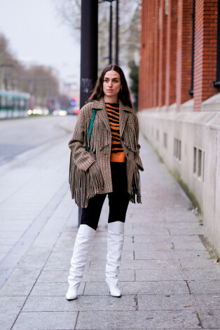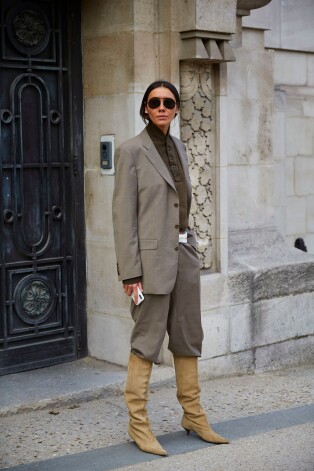 Monohroma vai līdzīga krāsu gamma, aptuveni vienādas zābaku un bikšu proporcijas – elegantākais un smalkākais paņēmiens tendences apgūšanā.