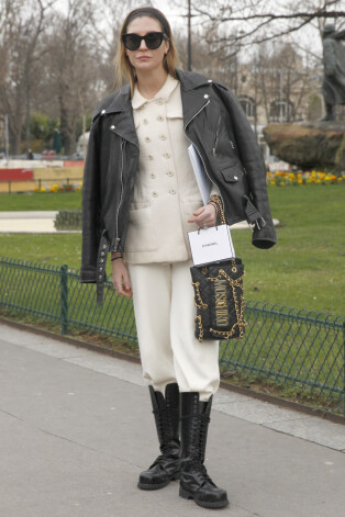 Līdzīgi kā auguma proporcijas, stila līdzsvaram noderēs kontrasti – klasisku kostīmu papildināt ar ielu stila estētikas elementiem: baikeru jaku un smagnējiem zābakiem.
