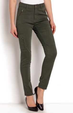 Džinsa bikses jānomaina pret haki krāsas militāra rakstura biksēm, kuras funkcionalitātes pastiprināšanai papildinātas ar kabatām, bet piegulošais piegriezums akcentēs skaistās kājas un tādējādi, protams, sievišķību.