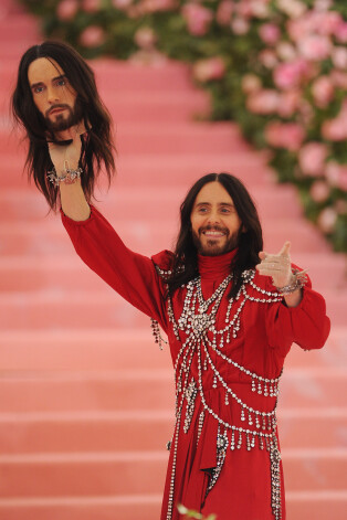 Aktieris un mūziķis Džēreds Leto sanākušos mazāk pārsteidza ar savu karalisko tērpu – vairāk uzmanības tika pievērsts tam, ka viņš rokā nesa... pats savu galvu. Pavisam noteikti tā bija atsauce uz Gucci modes nama 2018. gada rudens/ziemas kolekcijas skati, kurā modeļi nesa paši savas galvas imitāciju. Un vienas tādas galvas izveidošana, kā vēsta, izmaksā ap 10 000 eiro.