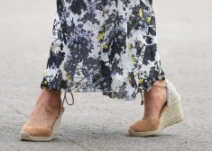 Atklājot savu dārzu „Back to Nature”, Kembridžas hercogienei Ketrīnai kājās bija vasaras kurpes ar pilno zoli. Modes pētnieki zina teikt, ka tās ir spāņu zīmola „Castañer” ražojums. Pērn Austrālijas vizītes laikā, šī paša zīmola, bet citas krāsas, kurpes bija izvēlējusies arī Saseksas hercogiene Megana.